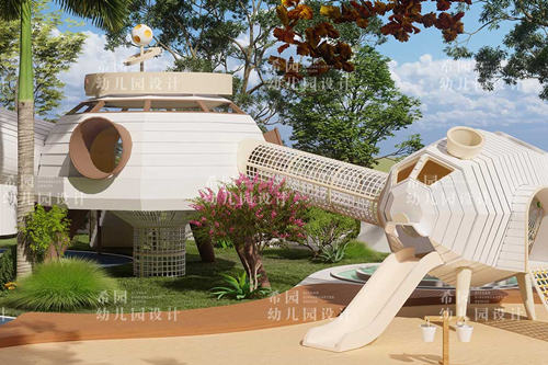 希園設(shè)計(jì)師將形式多樣的戶外拓展空間與藝術(shù)造型區(qū)角、波浪棧道、音樂認(rèn)識(shí)等設(shè)施結(jié)合,寓教于樂,在游戲...